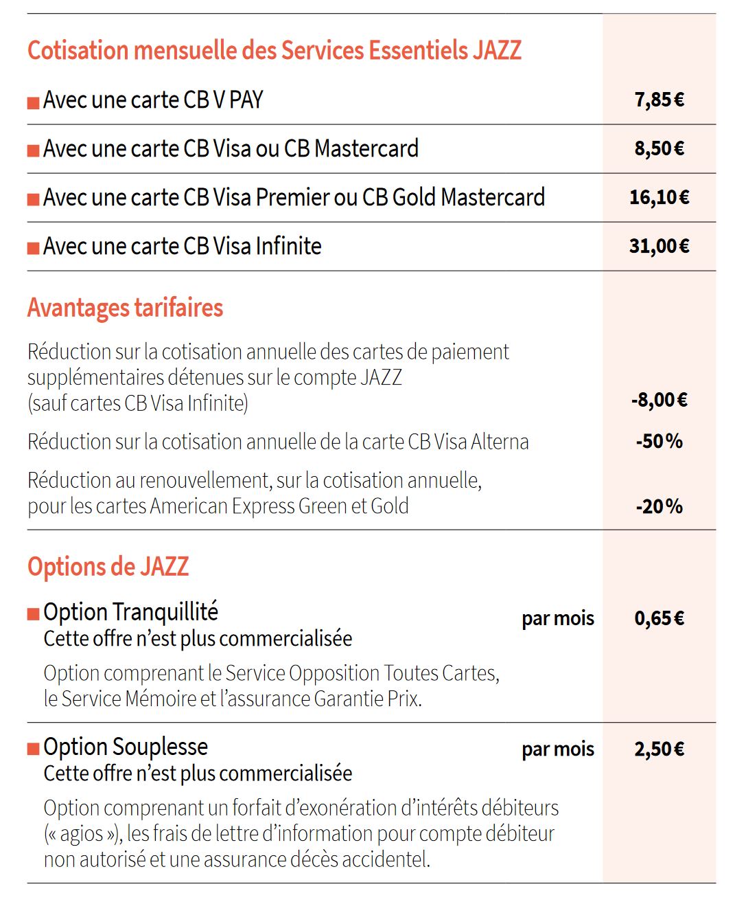 Lassurance de vos moyens de paiement. Le Jazz comprend différents services entre autres une carte bancaire une assurance Quiétis une facilité de caisse personnalisée une prise en charge des frais pour le remplacement dune carte lors dune perte ou de vol. Souscrire à loffre Jazz de la Société Générale vous permet de profiter de plusieurs avantages et notamment de la plateforme Grande Avenue.