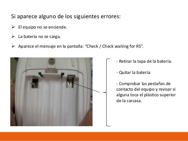 The ventricle whose bundle is blocked will have to wait for electrical impulses to spread from the other ventricle. POSIBLES AVERÍAS O ERRORES El equipo no se enciende La batería no se carga Aparece el mensaje en la pantalla.