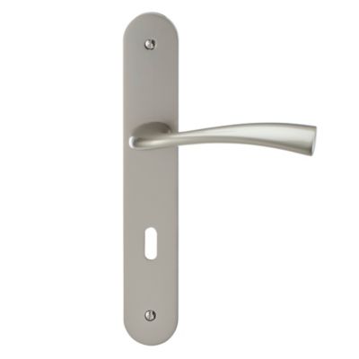 Ensemble Poignees De Porte Exterieure Sur Plaque Colours Saho Gris Brillant Castorama