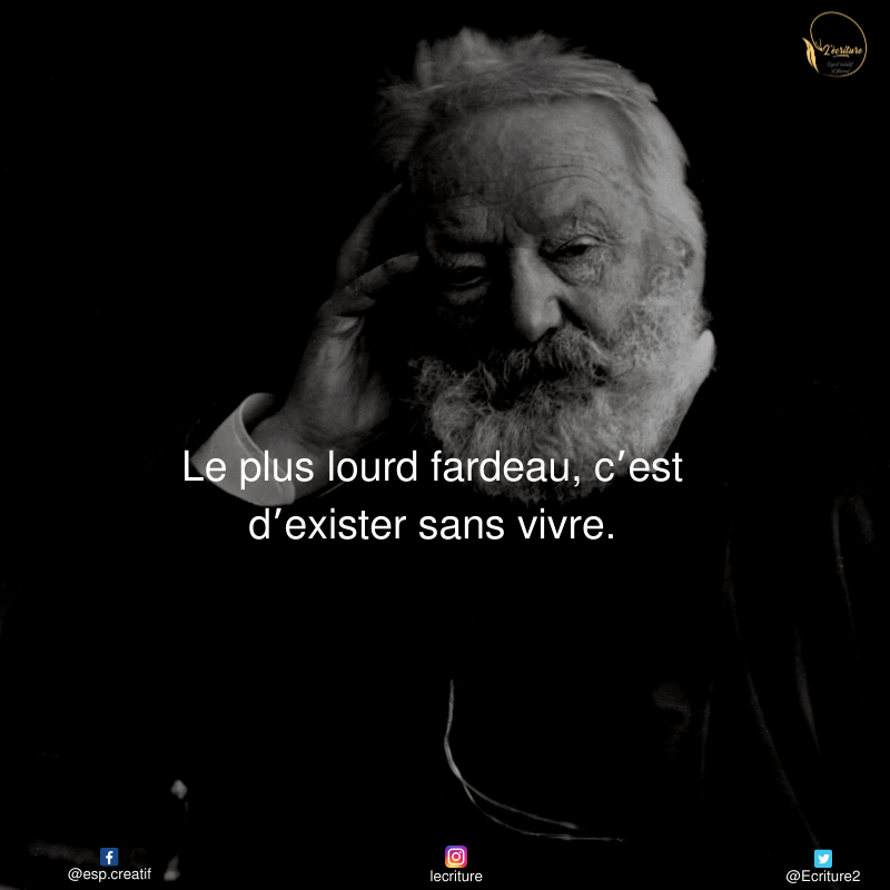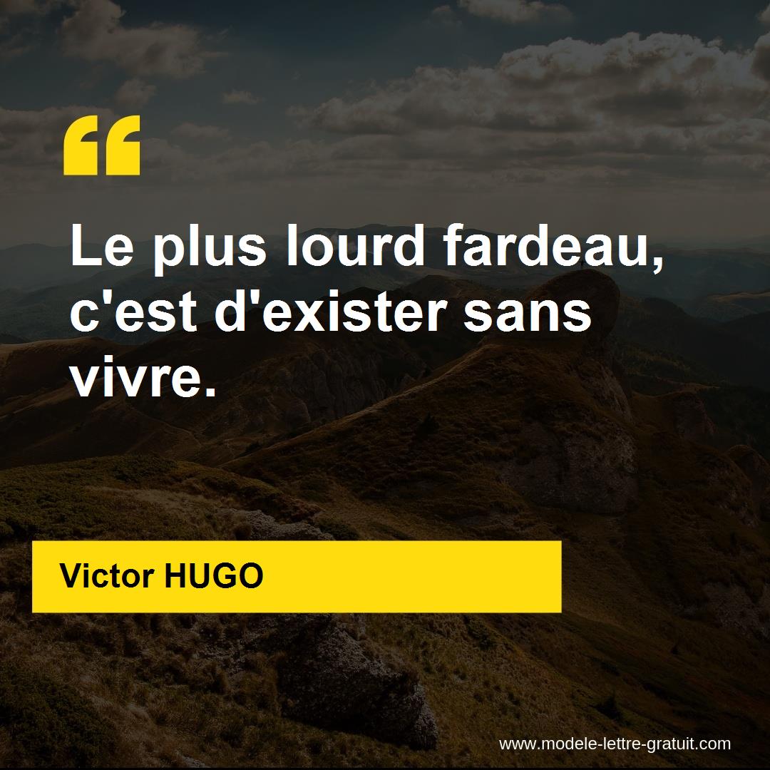 Citation de Victor Hugo sur Vivre Une citation au hasard. Quelle est la citation la plus belle sur le plus lourd fardeau. Le plus lourd fardeau cest dexister sans vivre Paroles en or Le plus lourd fardeau cest dexister sans vivre Le plus lourd fardeau cest dexister sans vivre.